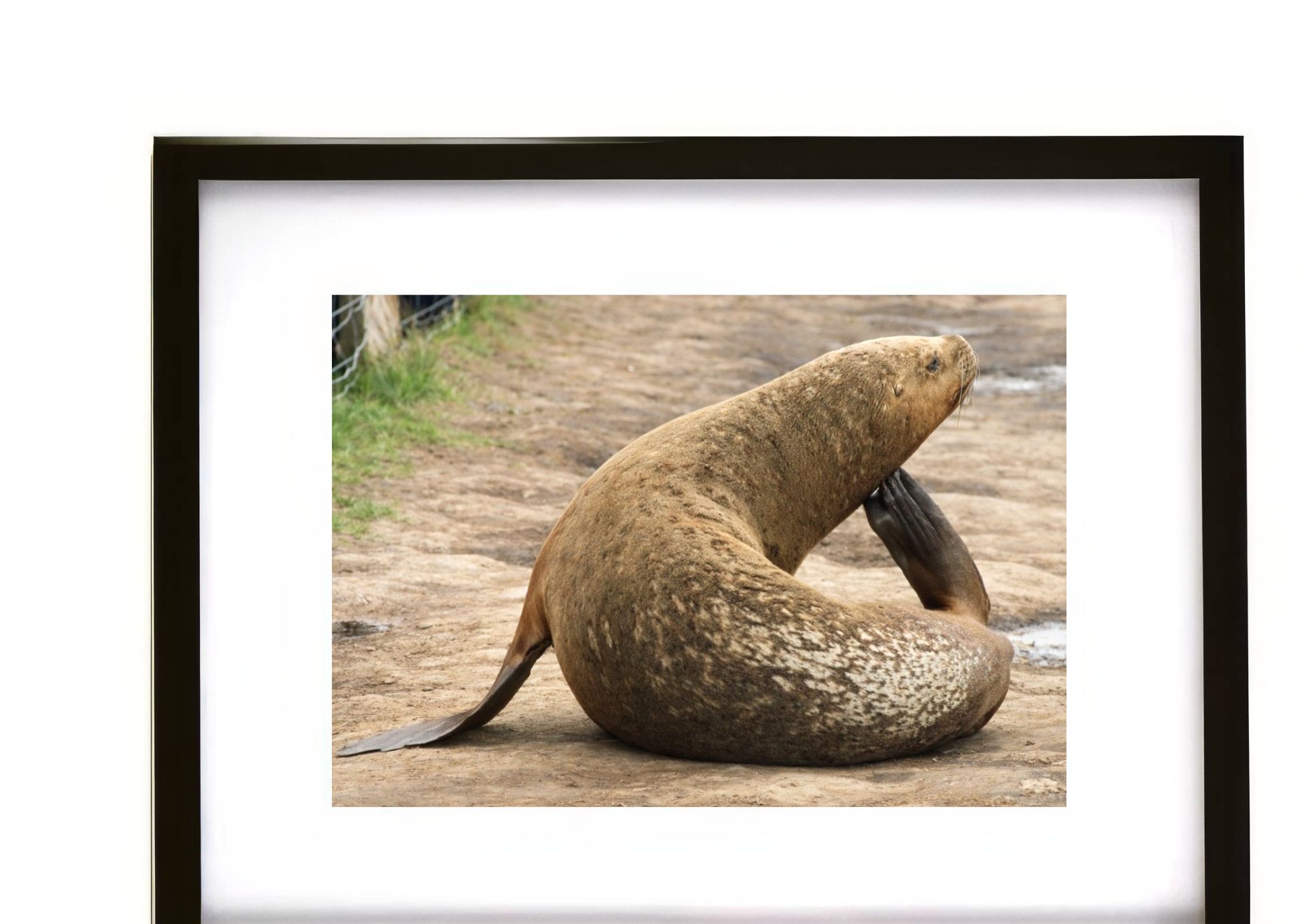 Framed Wildlife Art Print – Sea Lion Resting on a Path