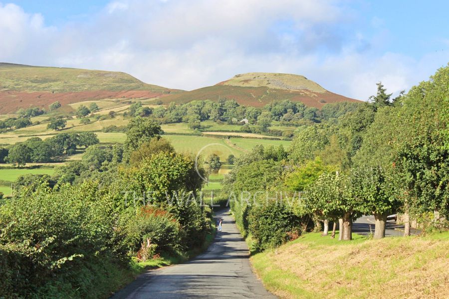 Immerse yourself in the breathtaking beauty of Crickhowell with this picturesque view from Great Oak Road, leading towards the iconic Table Mountain. This image captures the rolling Welsh countryside, lush greenery, and the unmistakable peak of Table Mountain, a beloved feature of the Brecon Beacons National Park.