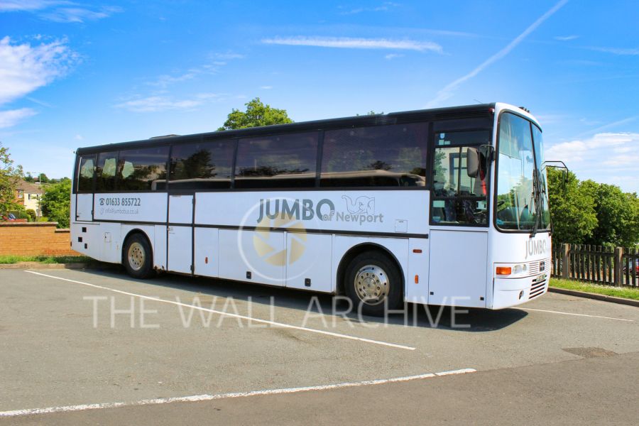 Jumbo of Newport, Ludlow bus park, South Wales coaches, coach photography, UK transport, bus enthusiasts, vintage coach, travel bus, transport memorabilia, Newport Wales, coach spotting, British buses, road travel, long-distance coach, classic coach images, scenic transport, bus prints, coach travel UK, transport industry, coach hire services
