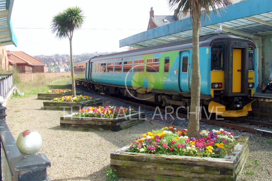 This photograph captures Whitby Railway Station, located within the North Yorkshire Moors National Park, featuring a Class 158 (158 480) train.
