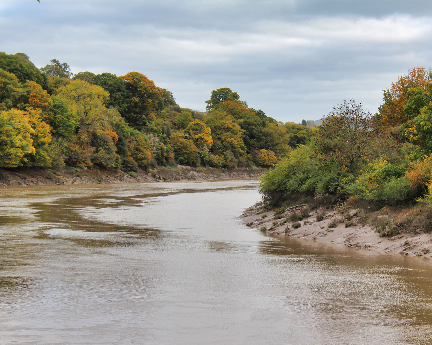 Newport autumn view of the The River Usk approaching Newport, South Wales