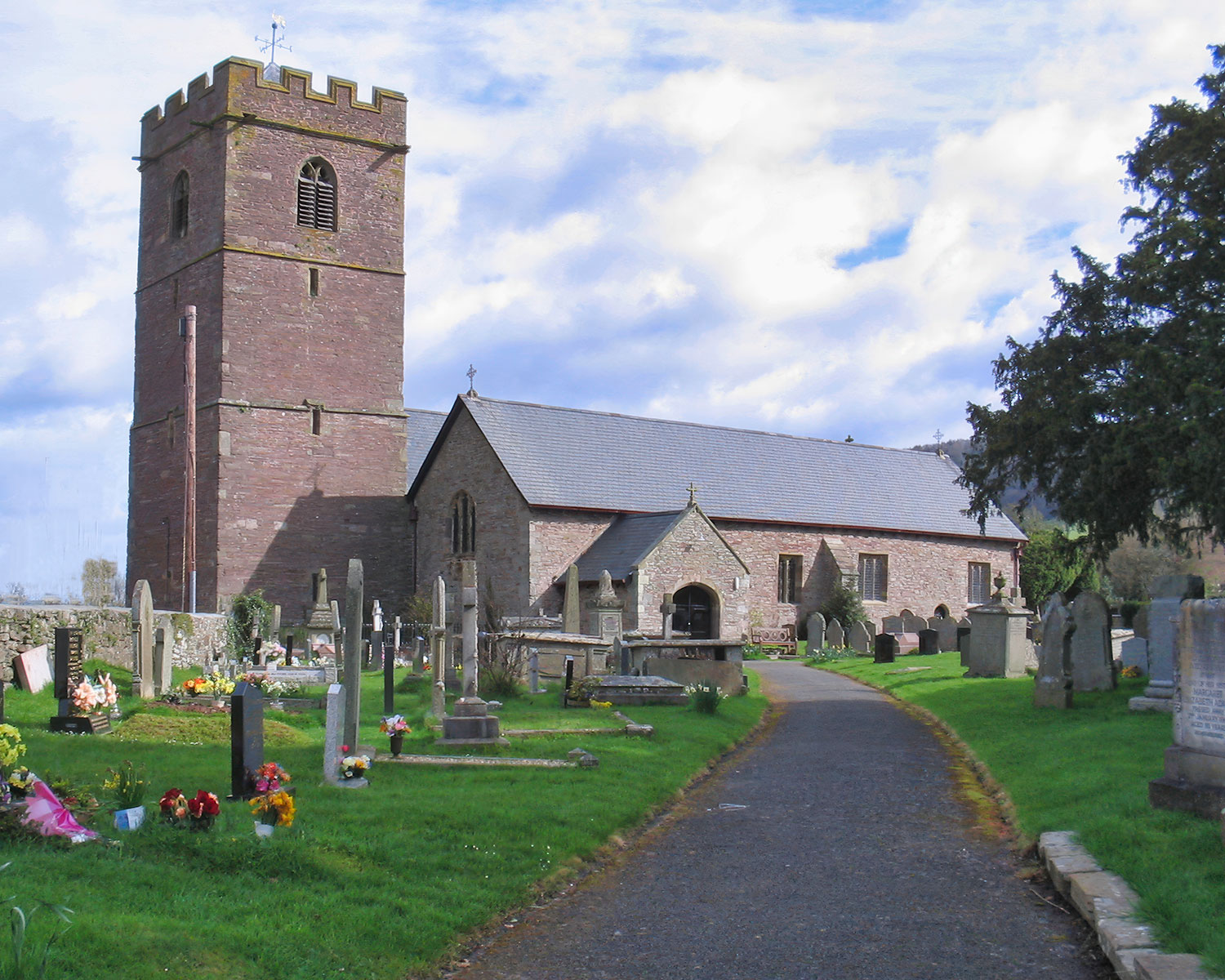 Church dedicated to St Gwendoline, sited at highest end of the town