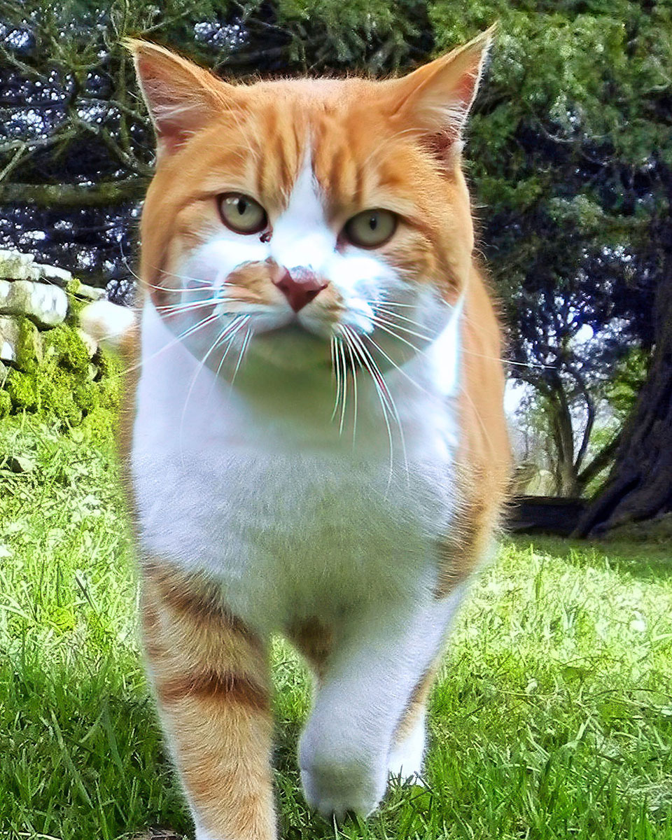 This photograph captures the charming and friendly cat known to greet visitors at the Church of St Mary The Virgin in Capel-y-Ffin. Taken in 2014, the ginger and white feline adds a unique and welcoming touch to the serene and historic atmosphere of this picturesque Welsh church. The lush greenery and tranquil setting perfectly complement the cat’s curious and confident demeanor, making it a memorable sight for visitors to the area.