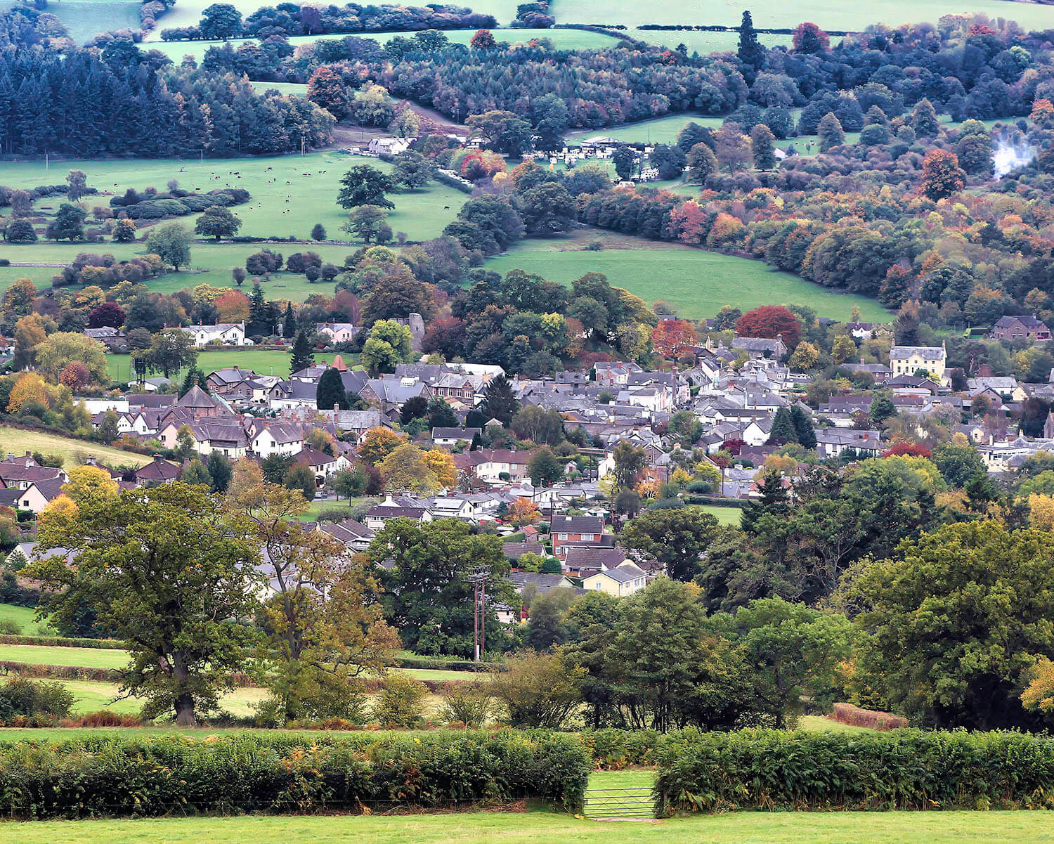 Ledbury Church Street with St Michael and All Angels Parish Church in the background 1989