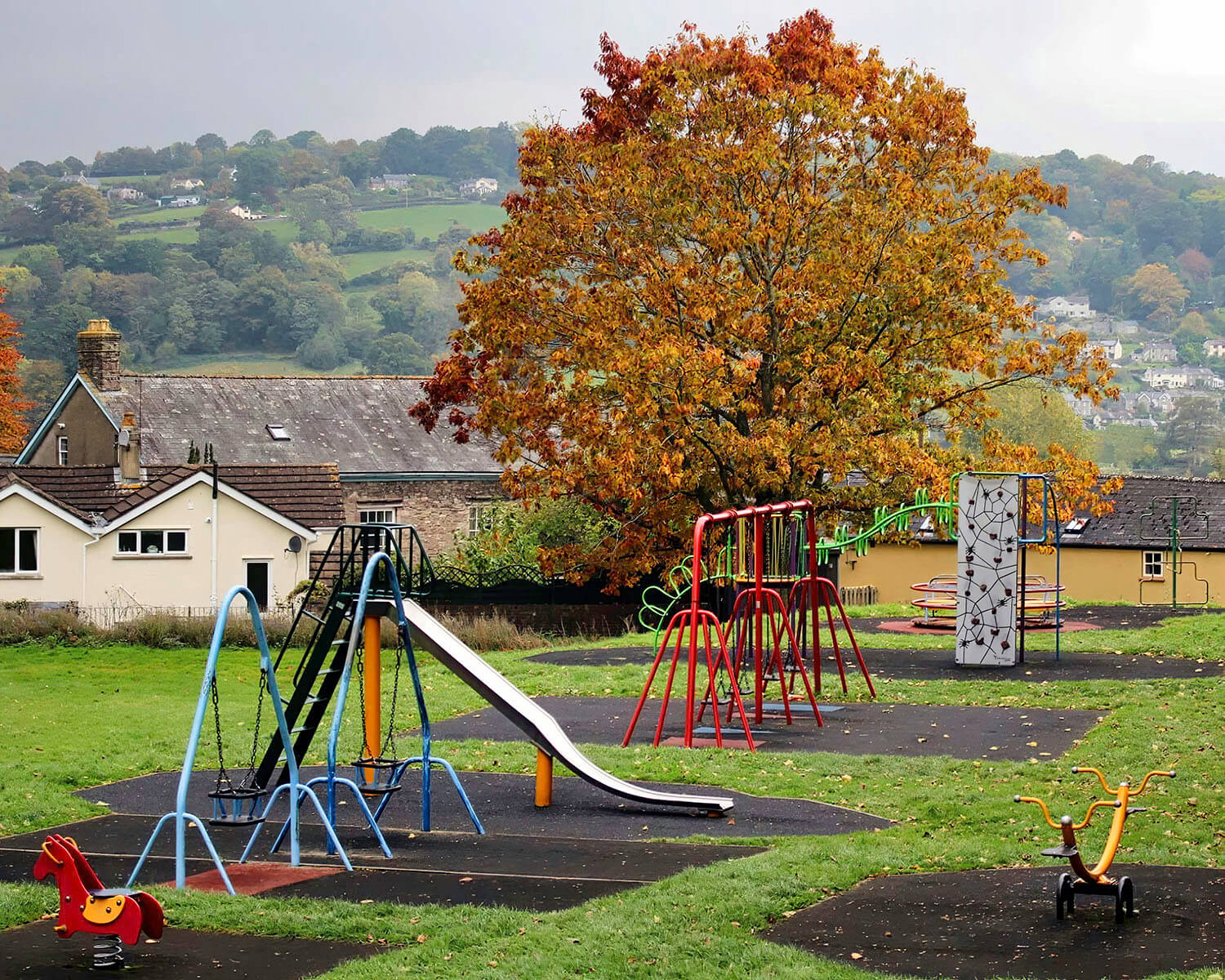View of the play arear in the recreation ground from the Tump