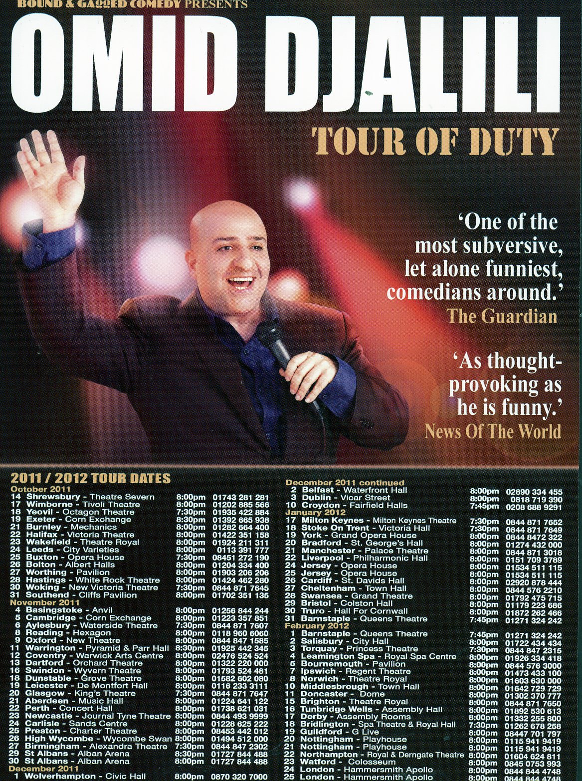 Vintage 2012 Double-Sided Promotional Advert for Omid Djalili “Tour of Duty” – Comedy Collectible (14 cm x 20 cm)